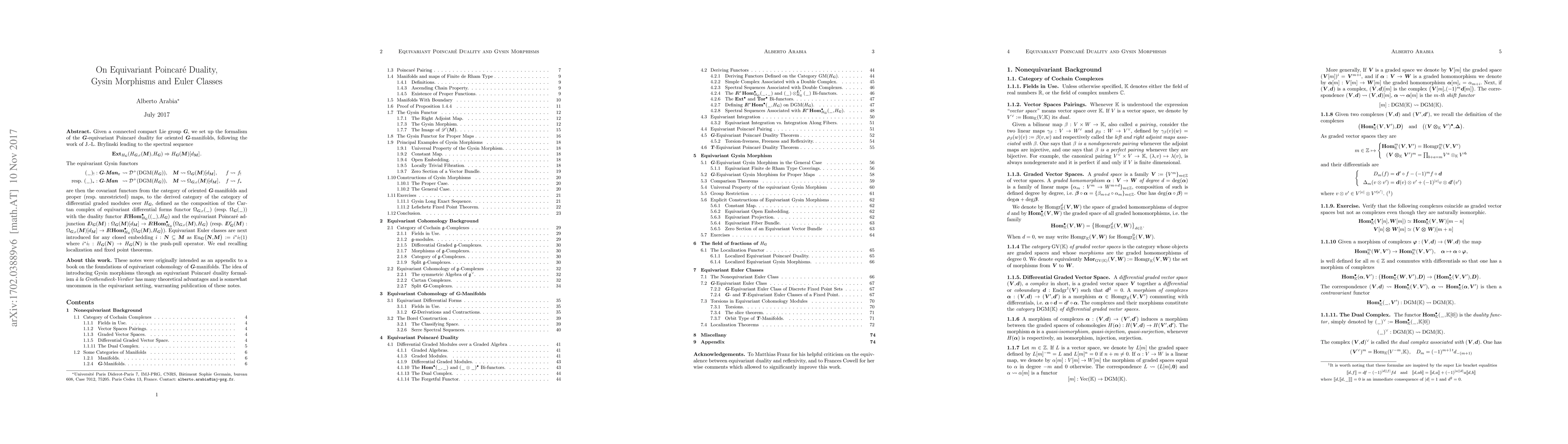 The aim of these notes, originally intended as an appendix to a book on the foundations of equivariant cohomology, is to set up the formalism of the $G$-equivariant Poincar\'e duality for oriented $G$-manifolds, for any connected compact Lie group $G$, following the work of J.-L. Brylinski leading to the spectral sequence $$\mathop{\rm Extgr}\nolimits_{H_G}(H_{G,\rm c} (M),H_G)\Rightarrow H_{G}(M)[d_{M}]\,.$$ The equivariant Gysin functor $(\_)_!:=\Omega_{G}(\_)\in\mathcal D^{+}(\mathord{\rm DGM}(H_{G}))$ (resp. $(\_)_{*}:=\Omega_{G,\rm c}(\_)$) is then defined in the category of oriented $G$-manifolds and proper maps (resp. unrestricted maps) with values in the derived category of the category of differential graded modules over $H_{G}$, as the composition of the Cartan complex of equivariant differential forms functor $\Omega_{G,\rm c}(\_)$ (resp. $\Omega_{G}(\_)$) with the duality functor $I\mkern-4.5muR\,{\rm Hom}_{H_{G}}^{\bullet}(\_,H_{G})$ and the equivariant Poincar\'e adjunction $I\mkern-4.5muD_{G} (M):\Omega_{G} (M)[d_{M}]\to I\mkern-4.5muR\,{\rm Hom}_{H_{G}}^{\bullet}(\Omega_{G,\rm c} (M),H_{G} )$ (resp. $I\mkern-4.5muD_{G}' (M):\Omega_{G,\rm c} (M)[d_{M}]\to I\mkern-4.5muR\,{\rm Hom}_{H_{G}}^{\bullet}(\Omega_{G} (M),H_{G} )$). Equivariant Euler classes are next introduced for any closed embedding $i:N\subseteq M$ as ${\rm Eu}_{G}(N,M):=i^{*}i_{!}(1)$ where $i^{*}i_{!}:H_{G}(N)\to H_{G}(N)$ is the push-pull operator. Some localization and fixed point theorems finish the notes. The idea of introducing Gysin morphisms through an equivariant Poincar\'e duality formalism \`a la Grothendieck-Verdier has many theoretical advantages and is somewhat uncommon in the equivariant setting, warranting publication of these notes.