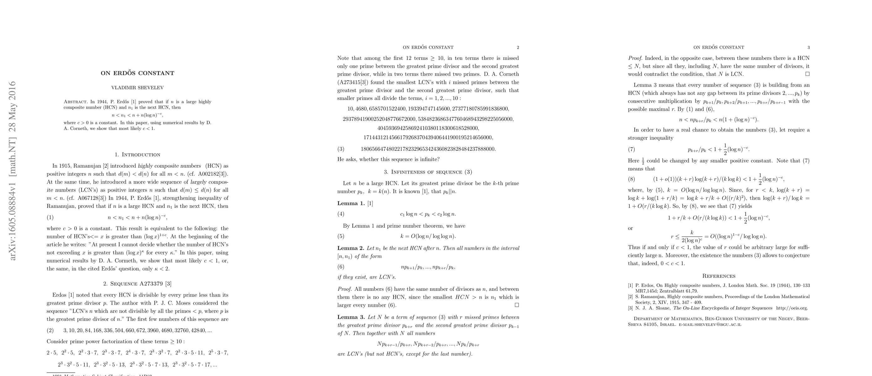 number (HCN) and $n_1$ is the next HCN, then $$n0$ is a constant. In this paper, using numerical results by D. A. Corneth,