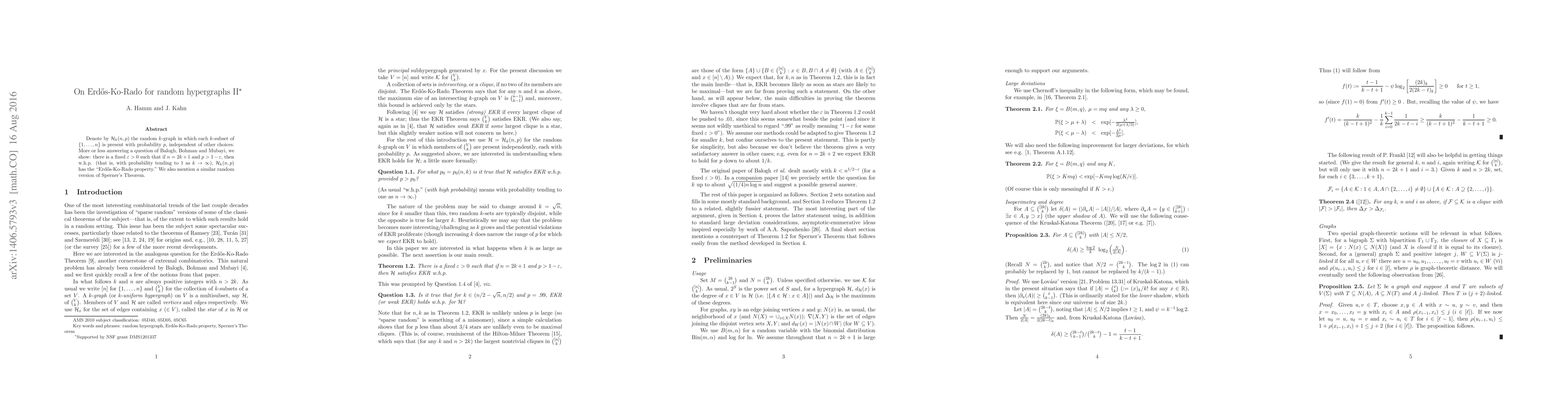 Denote by $\mathcal{H}_k (n,p)$ the random $k$-graph in which each $k$-subset of $\{1... n\}$ is present with probability $p$, independent of other choices. More or less answering a question of Balogh, Bohman and Mubayi, we show: there is a fixed $\varepsilon >0$ such that if $n=2k+1$ and $p> 1-\varepsilon$, then w.h.p. (that is, with probability tending to 1 as $k\rightarrow \infty$), $\mathcal{H}_k (n,p)$ has the "Erd\H{o}s-Ko-Rado property." We also mention a similar random version of Sperner's Theorem.