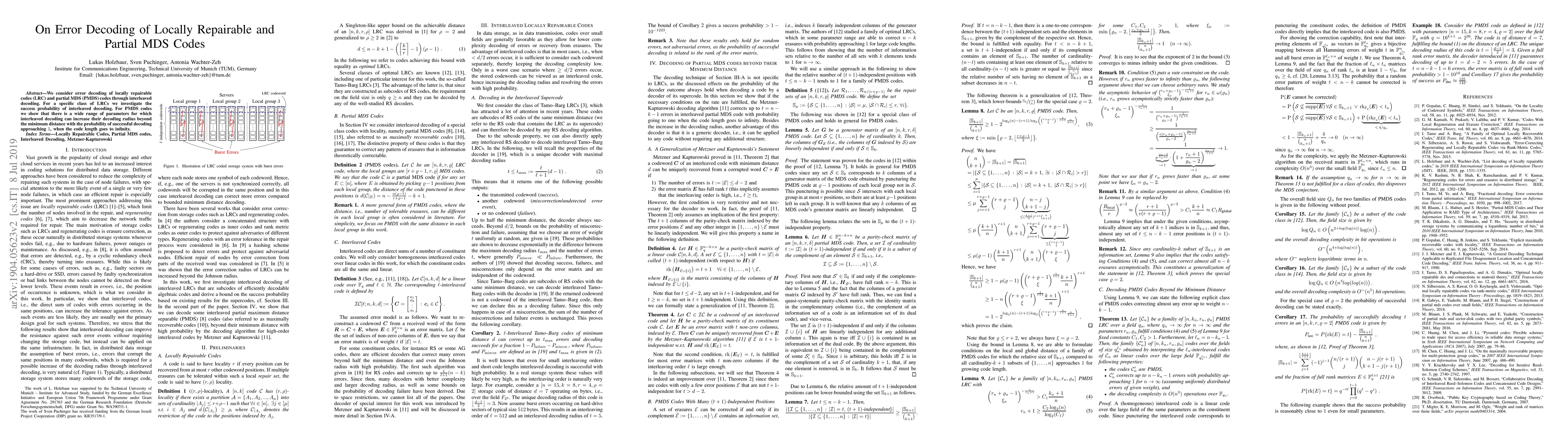 This paper explores error decoding techniques for locally repairable codes (LRC) and partial maximum distance separable (PMDS) codes using interleaved decoding. It demonstrates that for certain LRCs, interleaved decoding has a high success probability, while for PMDS codes, it significantly increases the decoding radius, approaching a nearly certain success rate as code length grows.