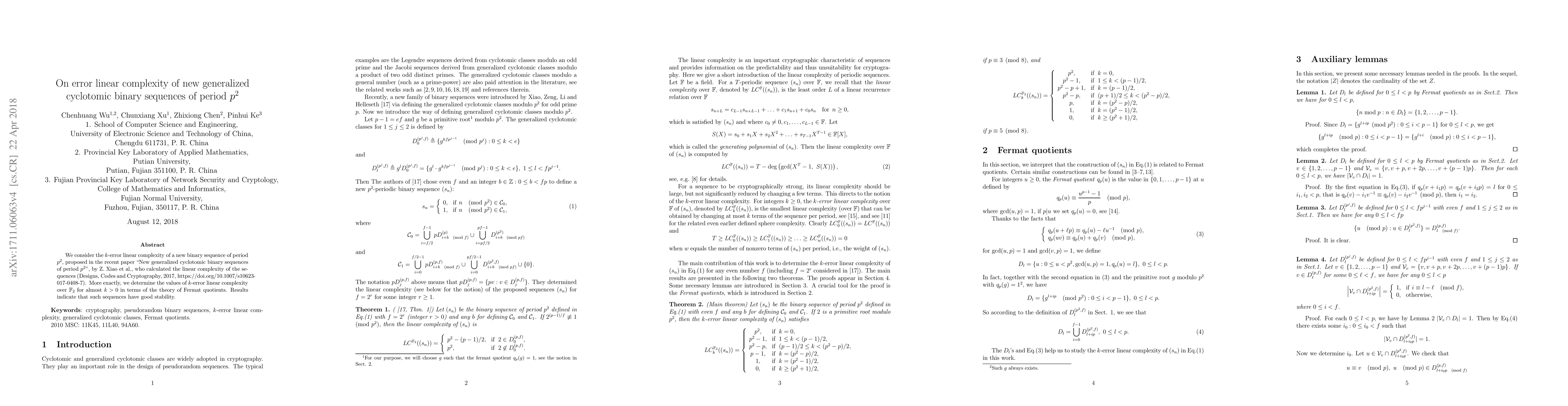 We consider the $k$-error linear complexity of a new binary sequence of period $p^2$, proposed in the recent paper "New generalized cyclotomic binary sequences of period $p^2$", by Z. Xiao et al., who calculated the linear complexity of the sequences (Designs, Codes and Cryptography, 2017, https://doi.org/10.1007/s10623-017-0408-7). More exactly, we determine the values of $k$-error linear complexity over $\mathbb{F}_2$ for almost $k>0$ in terms of the theory of Fermat quotients. Results indicate that such sequences have good stability.