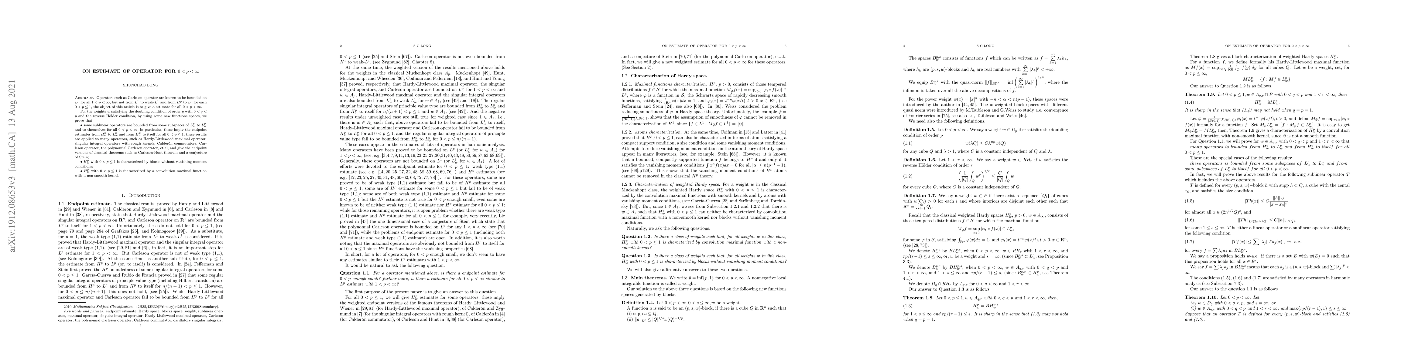 Researchers developed new functions spaces to estimate operator bounds for $L^p$ and $H^p$, extending the scope from $1<p<ty$ to all $0<p<ty$. They also characterized $H^p_w$ spaces with blocks of vanishing moment conditions.
