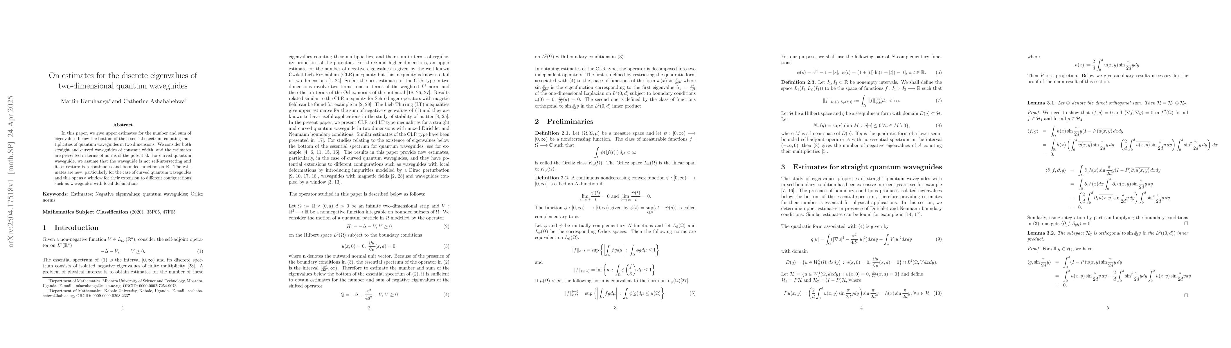 The paper presents novel upper estimates for the number of discrete eigenvalues of quantum waveguides in two dimensions, considering both straight and curved waveguides with constant width, and provides a framework for extending these estimates to waveguides with local deformations.