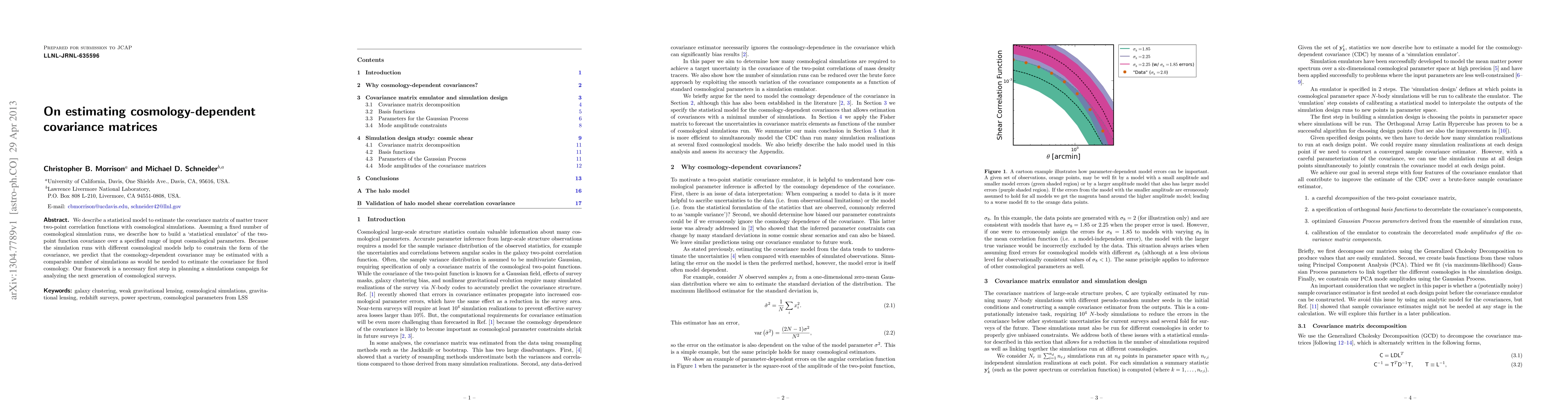 A statistical model allows for estimating cosmology-dependent covariance matrices using a limited number of simulations, enabling efficient planning for future cosmological surveys. This framework constrains the form of the covariance matrix with multiple simulation runs.