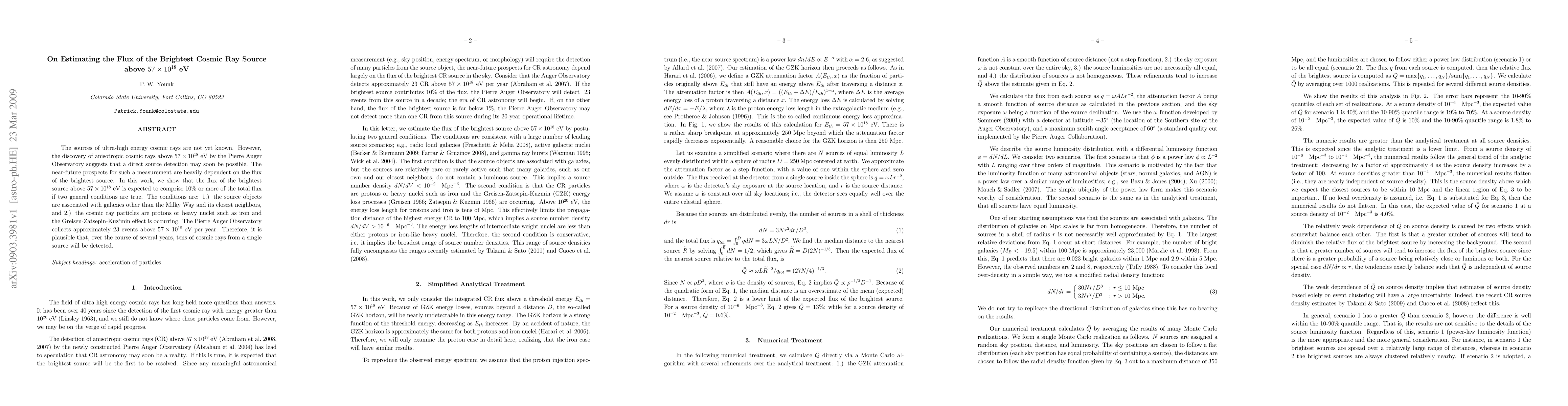 The sources of ultra-high energy cosmic rays are not yet known. However, the discovery of anisotropic cosmic rays above 57x10^18 eV by the Pierre Auger Observatory suggests that a direct source detection may soon be possible. The near-future prospects for such a measurement are heavily dependent on the flux of the brightest source. In this work, we show that the flux of the brightest source above 57x10^18 eV is expected to comprise 10% or more of the total flux if two general conditions are true. The conditions are: 1.) the source objects are associated with galaxies other than the Milky Way and its closest neighbors, and 2.) the cosmic ray particles are protons or heavy nuclei such as iron and the Greisen-Zatsepin-Kuz'min effect is occurring. The Pierre Auger Observatory collects approximately 23 events above 57x10^18 eV per year. Therefore, it is plausible that, over the course of several years, tens of cosmic rays from a single source will be detected.