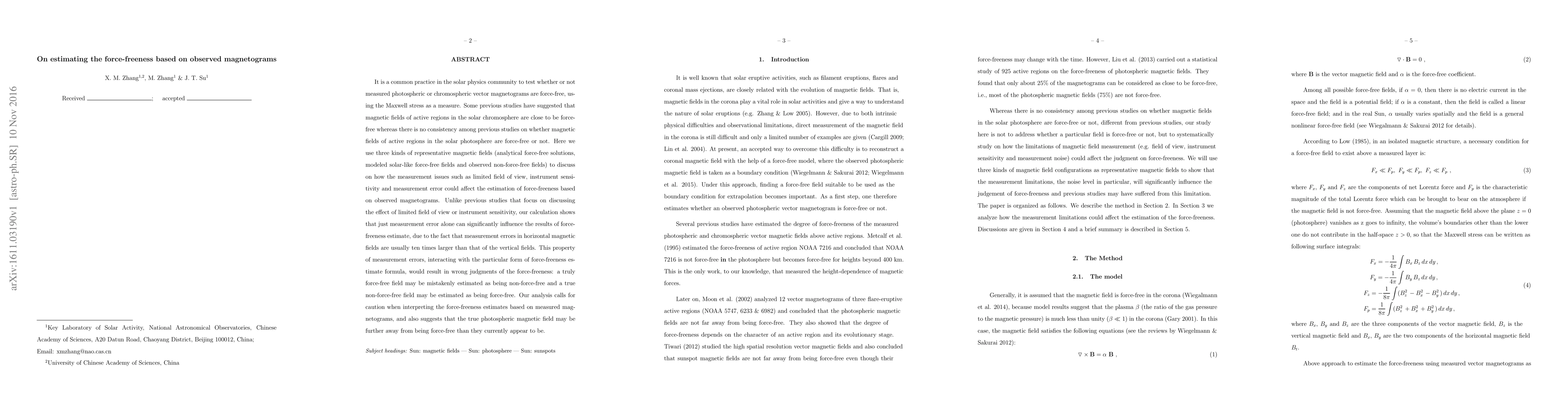 This paper investigates the estimation of force-freeness in solar magnetic fields using magnetograms, finding that measurement errors, especially in horizontal fields, significantly skew force-freeness estimates. It cautions against over-reliance on magnetogram-based assessments, suggesting that photospheric magnetic fields may be less force-free than previously thought.