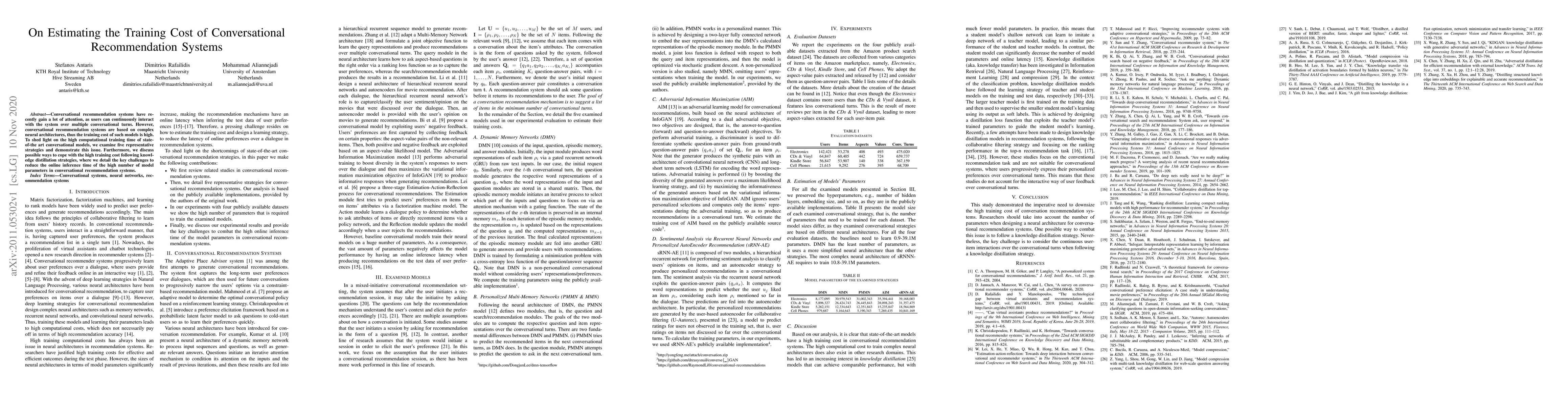 This research paper examines the high training cost of conversational recommendation systems, highlighting the need for efficient models and strategies to reduce computational time. It proposes knowledge distillation as a possible solution to cope with the challenge and reduce online inference time.