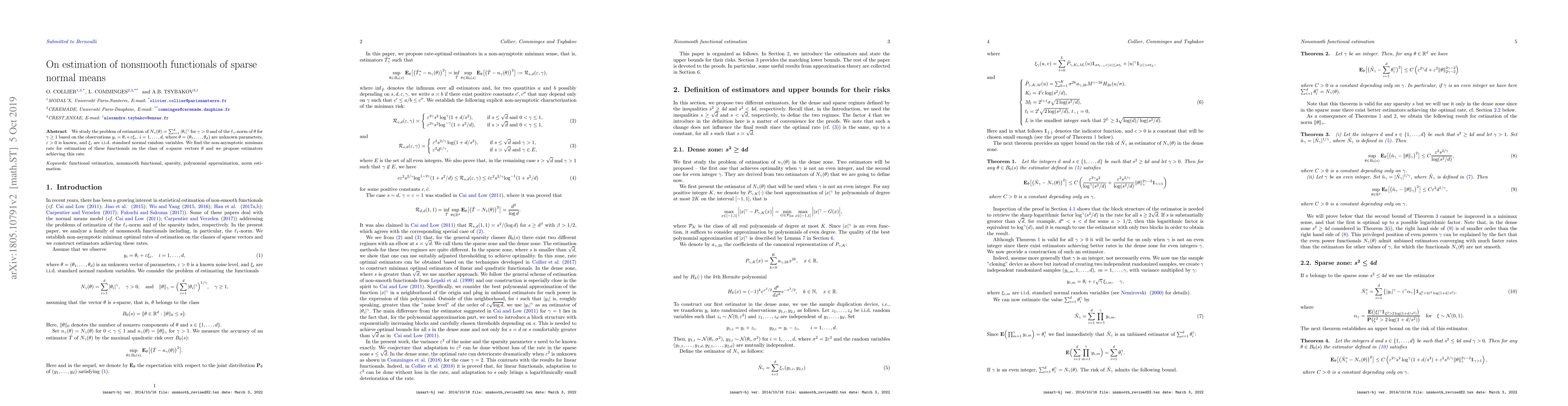 Researchers studied estimating a nonsmooth functional of sparse normal means with a focus on minimax risk and proposed estimators achieving the optimal rate. They found that their approach can estimate such functionals with high accuracy.
