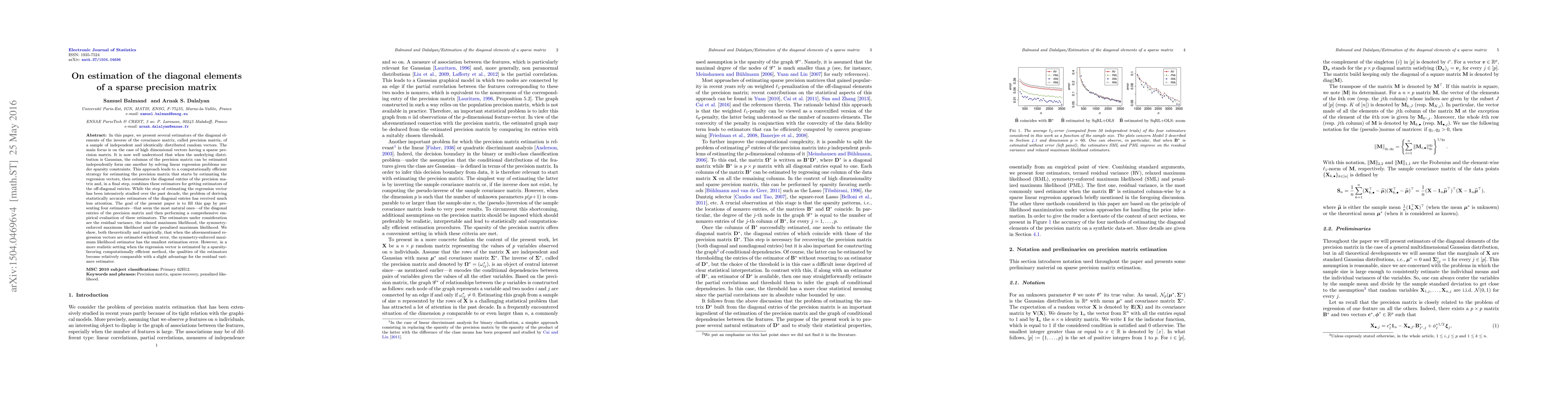 This paper proposes four estimators for the diagonal elements of a sparse precision matrix, focusing on high-dimensional Gaussian data. It evaluates the residual variance, relaxed maximum likelihood, symmetry-enforced maximum likelihood, and penalized maximum likelihood estimators, showing that the symmetry-enforced method is theoretically optimal under ideal conditions, while the residual variance estimator performs better in practical scenarios.