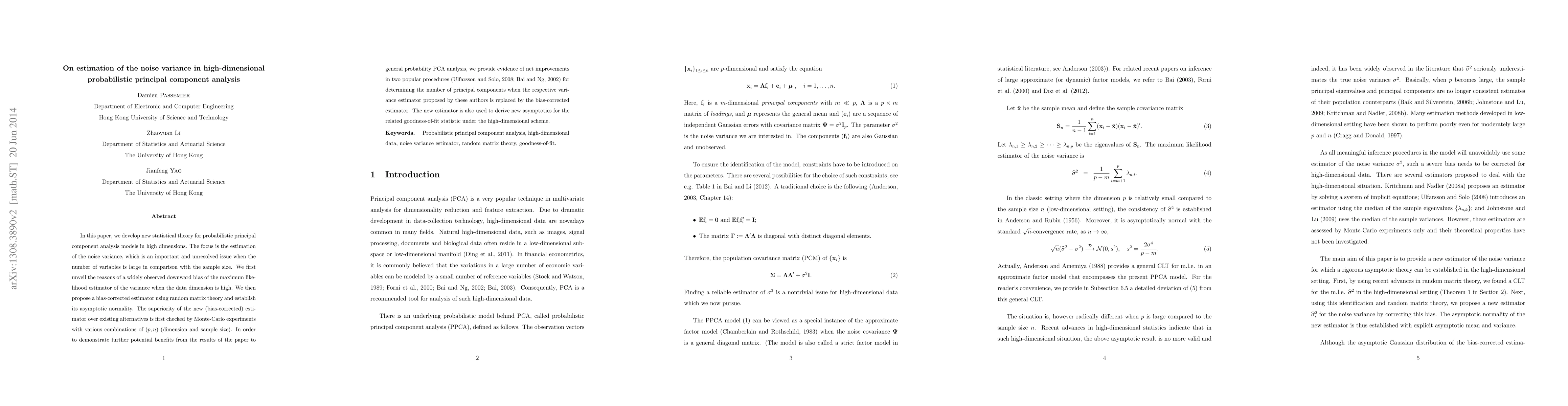 This paper develops a new statistical theory for high-dimensional probabilistic principal component analysis, addressing the estimation of noise variance. It proposes a bias-corrected estimator using random matrix theory, demonstrating its superiority through Monte-Carlo experiments and improvements in determining the number of principal components.