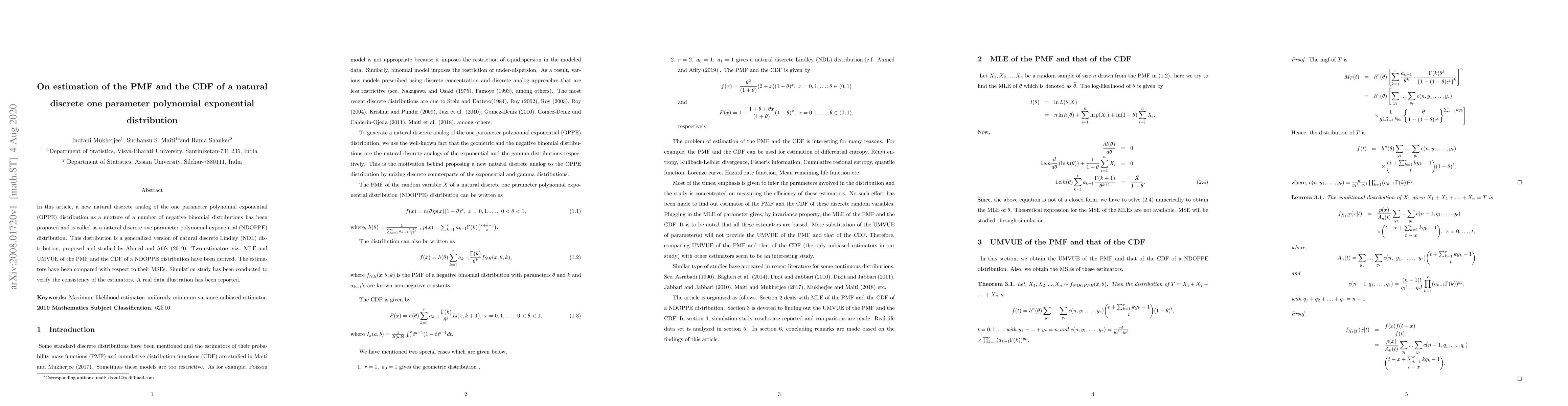 This paper proposes a new natural discrete one parameter polynomial exponential (NDOPPE) distribution, which is a generalized version of the natural discrete Lindley distribution. It derives maximum likelihood estimators (MLE) and uniformly minimum variance unbiased estimators (UMVUE) for the PMF and CDF of the NDOPPE distribution, comparing them based on mean squared errors (MSEs) and verifying their consistency through simulation studies and a real data example.