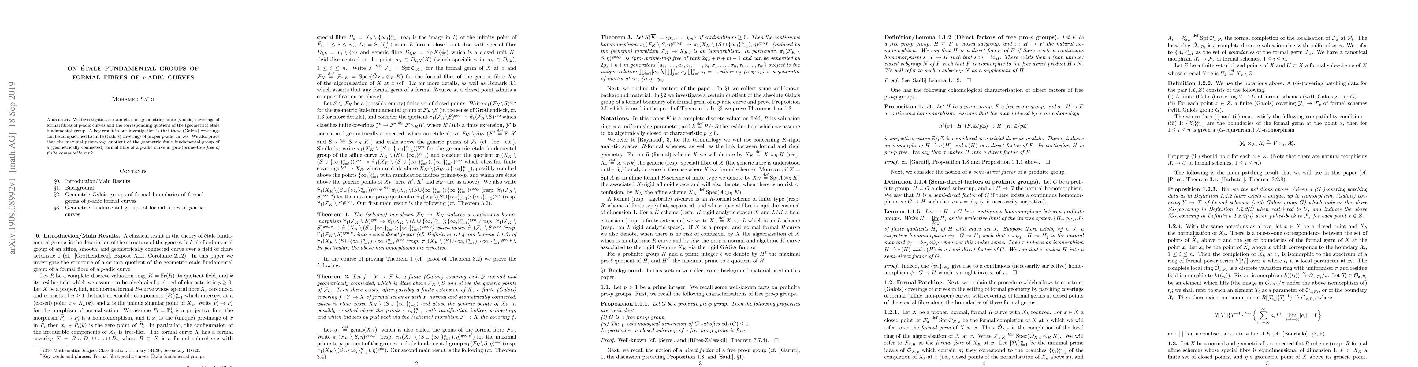 This paper explores finite Galois coverings of formal fibres of $p$-adic curves and their étale fundamental groups, demonstrating that these coverings can be extended to proper $p$-adic curves. It concludes that the maximal prime-to-$p$ quotient of the étale fundamental group of a geometrically connected formal fibre is a pro-prime-to-$p$ free group of finite computable rank.