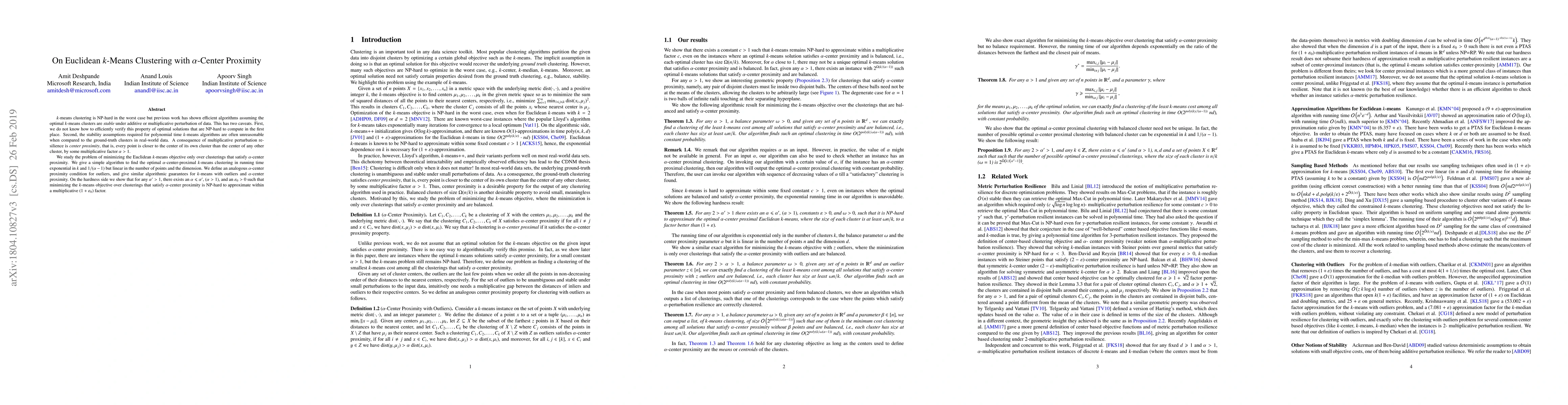 This paper explores the Euclidean $k$-means clustering problem under the $\alpha$-center proximity constraint, where each point is closer to its own cluster's center by a multiplicative factor $\alpha > 1$. The authors propose an efficient algorithm to find the optimal clustering under this constraint and provide hardness results showing the problem's approximation difficulty.