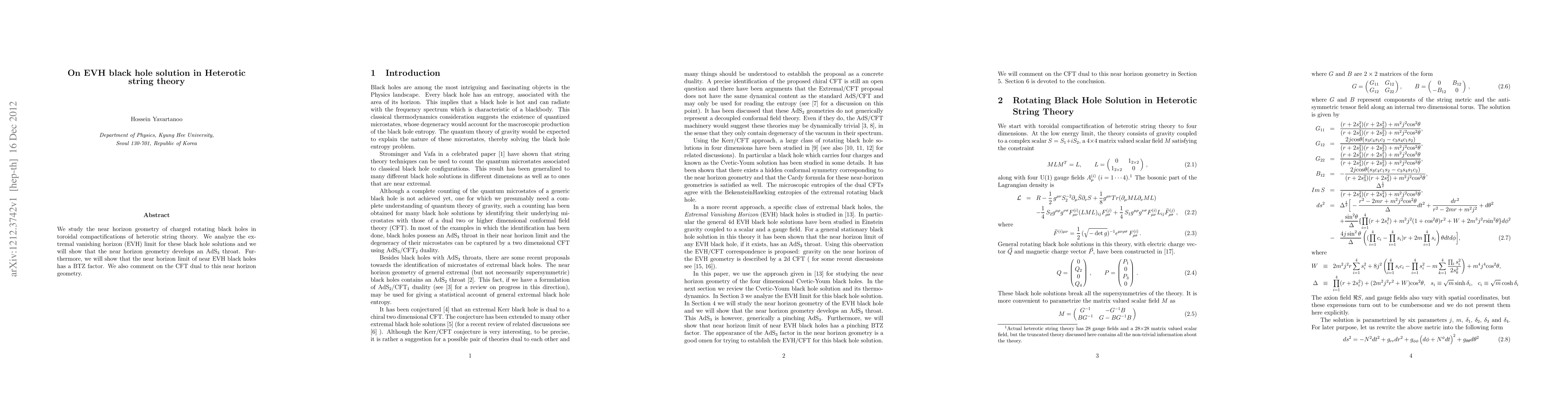 This paper investigates the near horizon geometry of charged rotating black holes in heterotic string theory, focusing on the extremal vanishing horizon (EVH) limit. The study reveals that the near horizon geometry exhibits an AdS3 throat and a BTZ factor, and it discusses the conformal field theory (CFT) dual corresponding to this geometry.