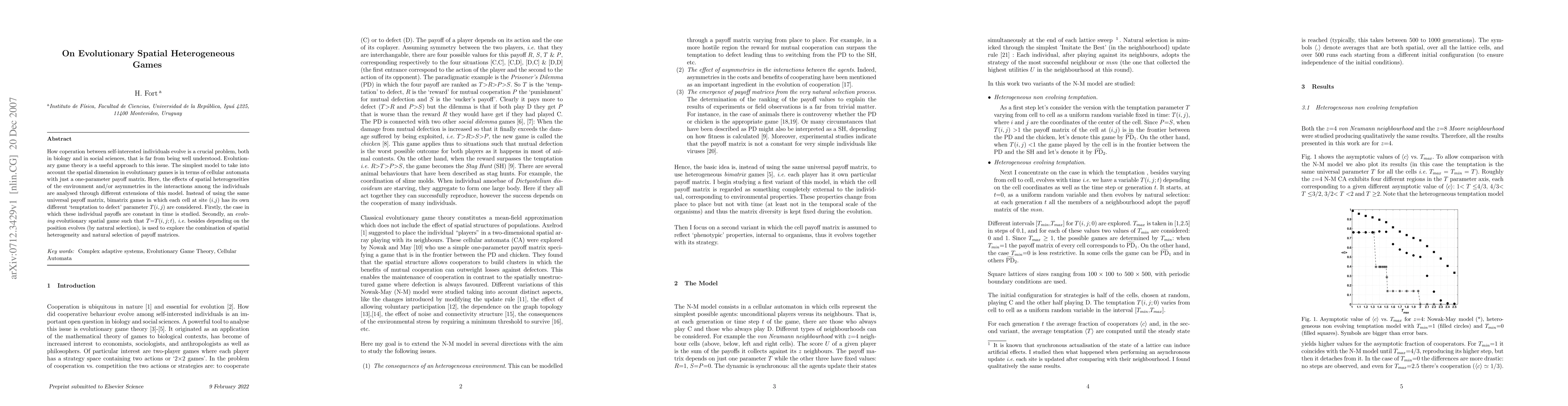 This paper explores how cooperation evolves in spatial heterogeneous games using evolutionary game theory, focusing on cellular automata models with varying payoff matrices. It examines both static and evolving spatial heterogeneities, analyzing how natural selection impacts the dynamics of cooperation.