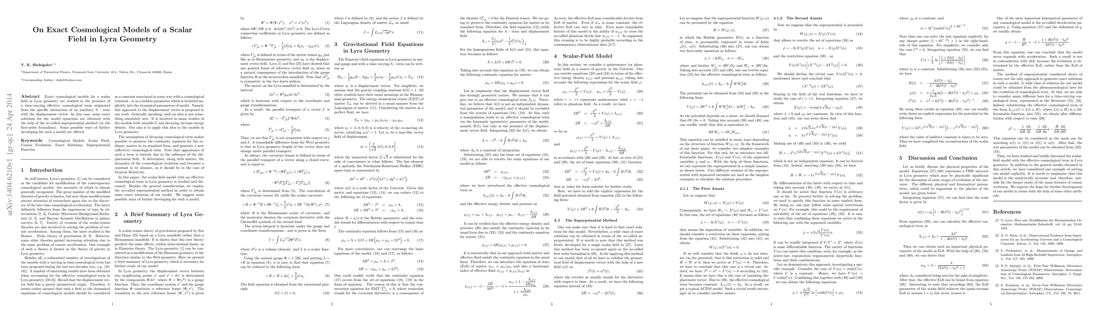 This paper explores exact cosmological models featuring a scalar field in Lyra geometry, where a time-varying cosmological term arises from interactions with an auxiliary $\Lambda$ term and a displacement vector. It utilizes the superpotential method to derive exact solutions and suggests potential future developments.