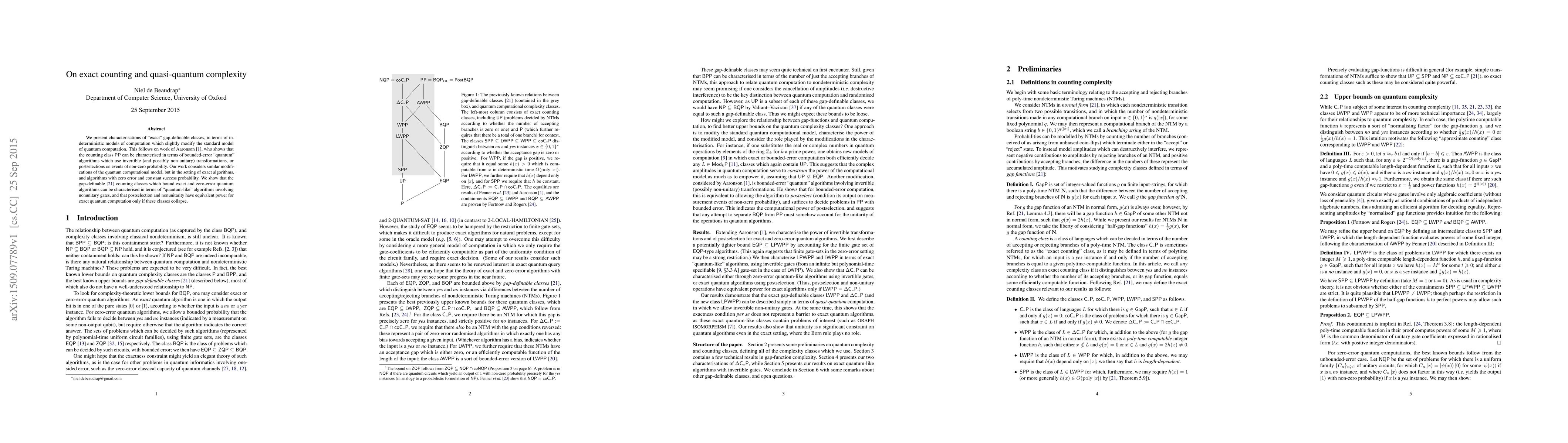 Researchers characterized exact gap-definable counting classes using modified quantum computational models with non-unitary transformations and postselections. They found that these modifications have equivalent power for zero-error quantum computation only if the classes collapse.