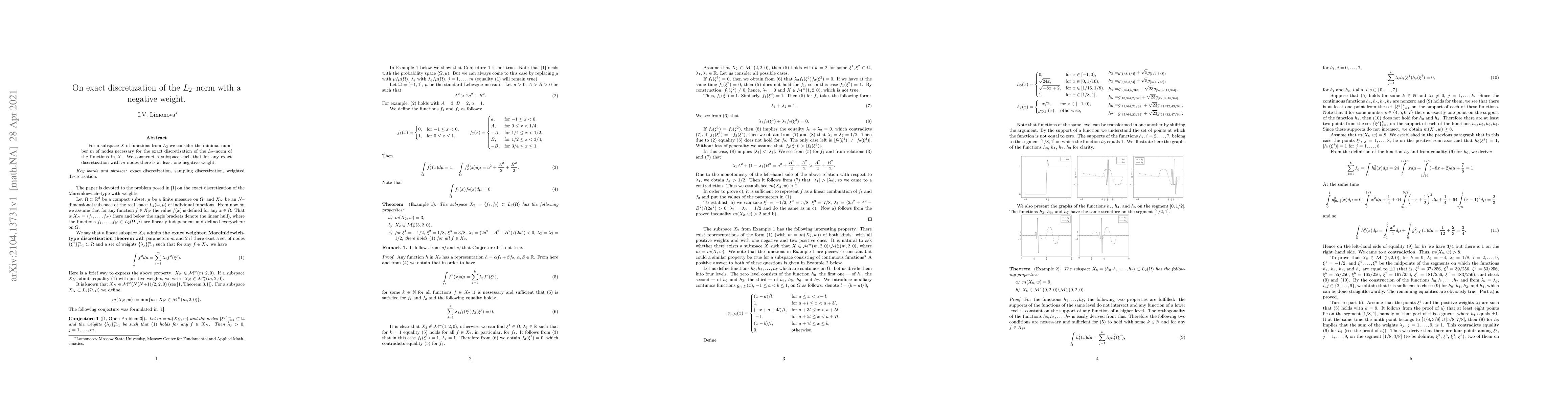 The paper explores the minimum number of nodes required for exact discretization of L2-norm functions in a subspace, finding that at least one negative weight exists for any such discretization.