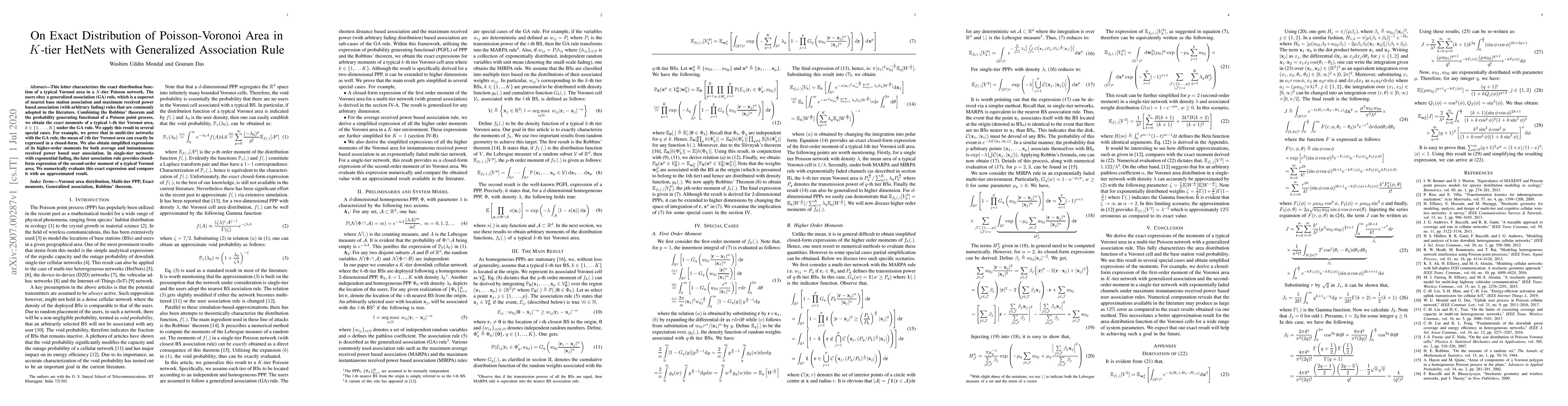 This paper characterizes the exact distribution of typical Voronoi areas in K-tier Poisson networks with a generalized association rule, providing closed-form expressions for moments of area sizes and received power.