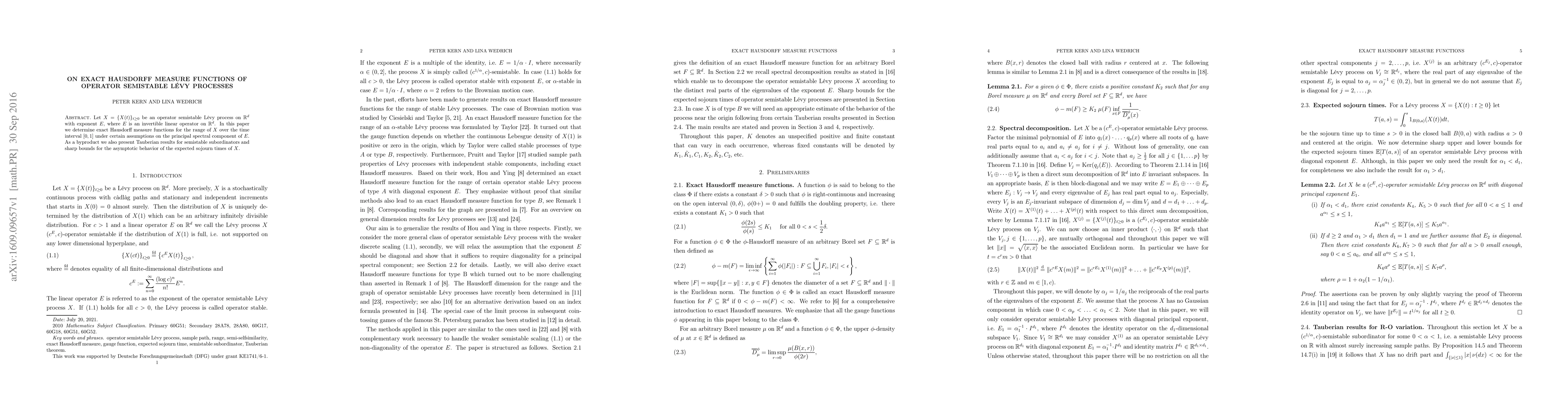 This paper determines exact Hausdorff measure functions for operator semistable Lévy processes under certain assumptions on the principal spectral component of the exponent. The findings also provide Tauberian results for semistable subordinators and sharp bounds for asymptotic behavior of expected sojourn times.