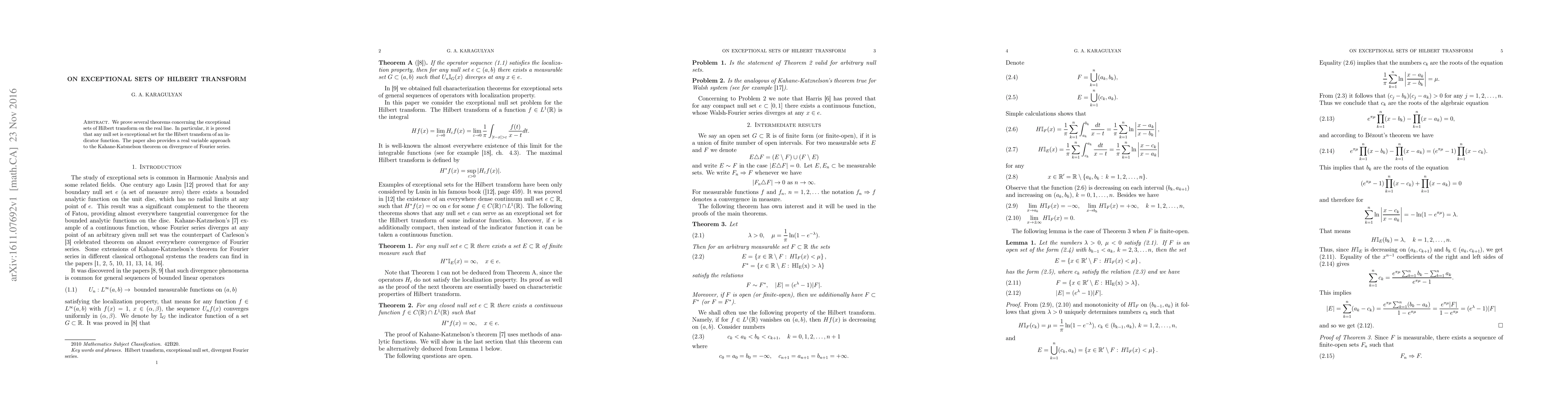 Researchers prove that null sets are exceptional sets for Hilbert transform, also providing a new approach to a key theorem on divergence of Fourier series, with implications for understanding these mathematical concepts.