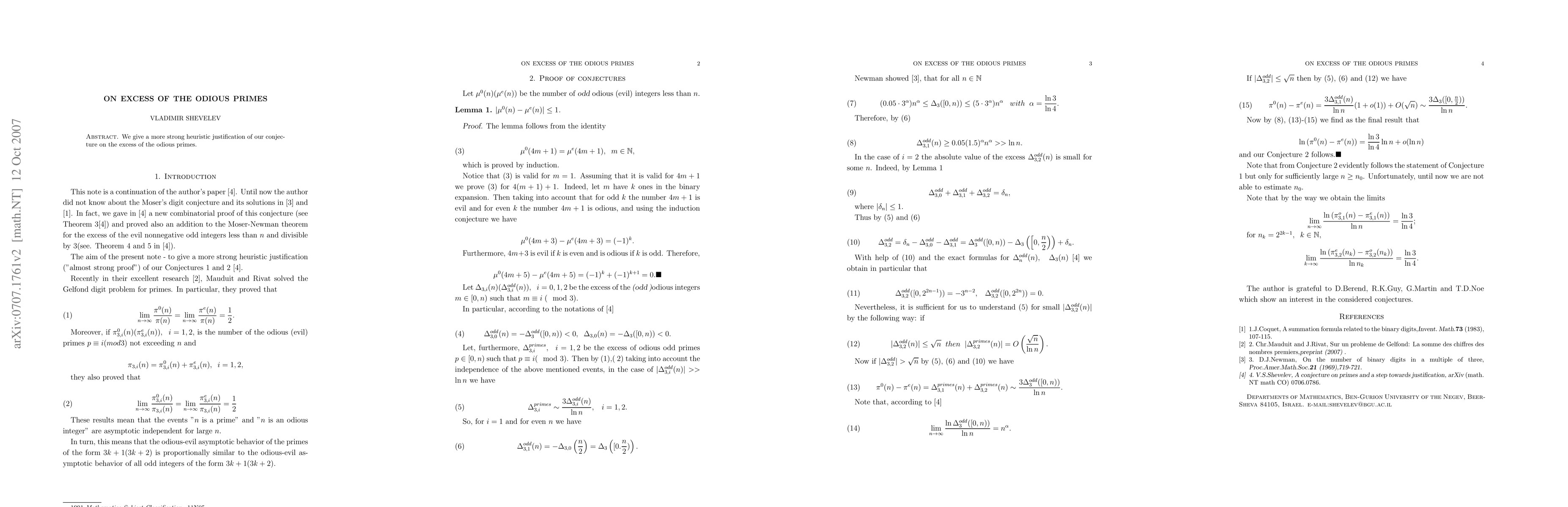 Summary: This paper provides a robust heuristic argument to support the conjecture regarding the excess of odious primes, aiming to strengthen the theoretical foundation behind the phenomenon.