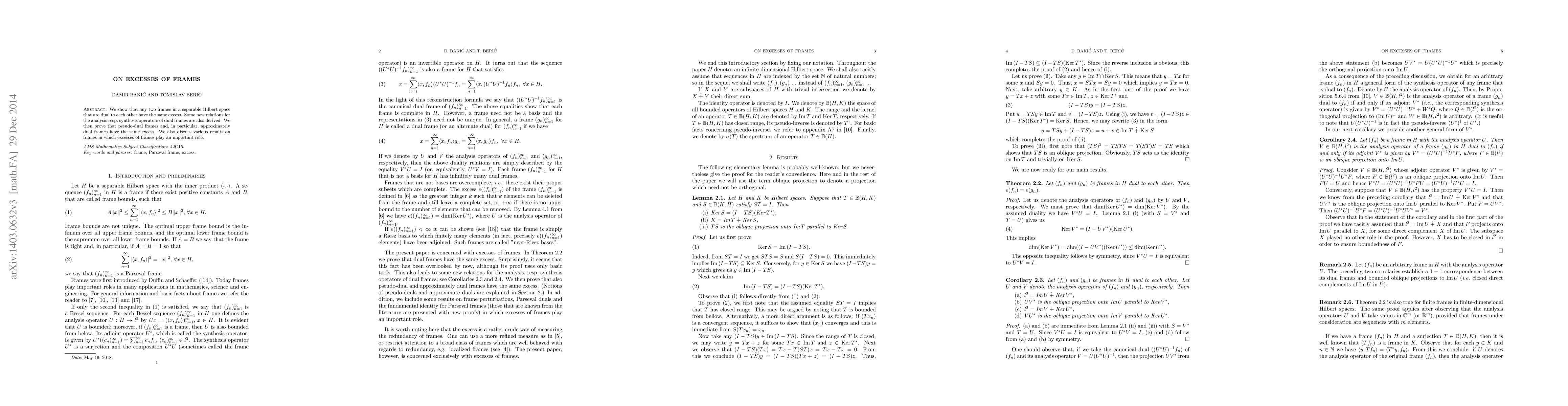 Research shows that dual frames in a Hilbert space have the same excess, with implications for analysis and synthesis operators. This also applies to pseudo-dual frames and approximately dual frames.