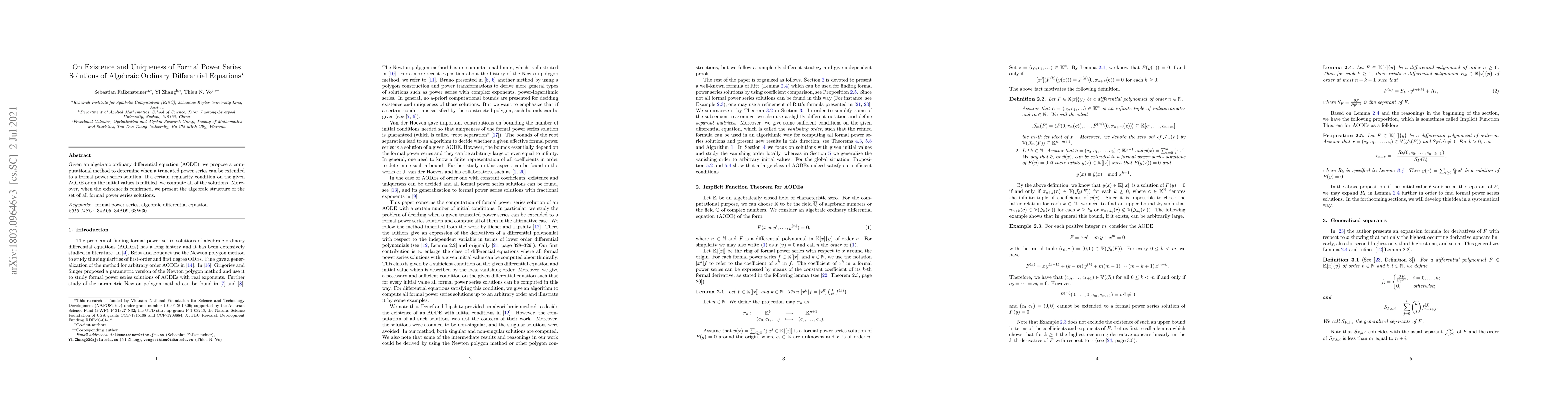 Given an algebraic ordinary differential equation (AODE), we propose a computational method to determine when a truncated power series can be extended to a formal power series solution. If a certain regularity condition on the given AODE or on the initial values is fulfilled, we compute all of the solutions. Moreover, when the existence is confirmed, we present the algebraic structure of the set of all formal power series solutions.