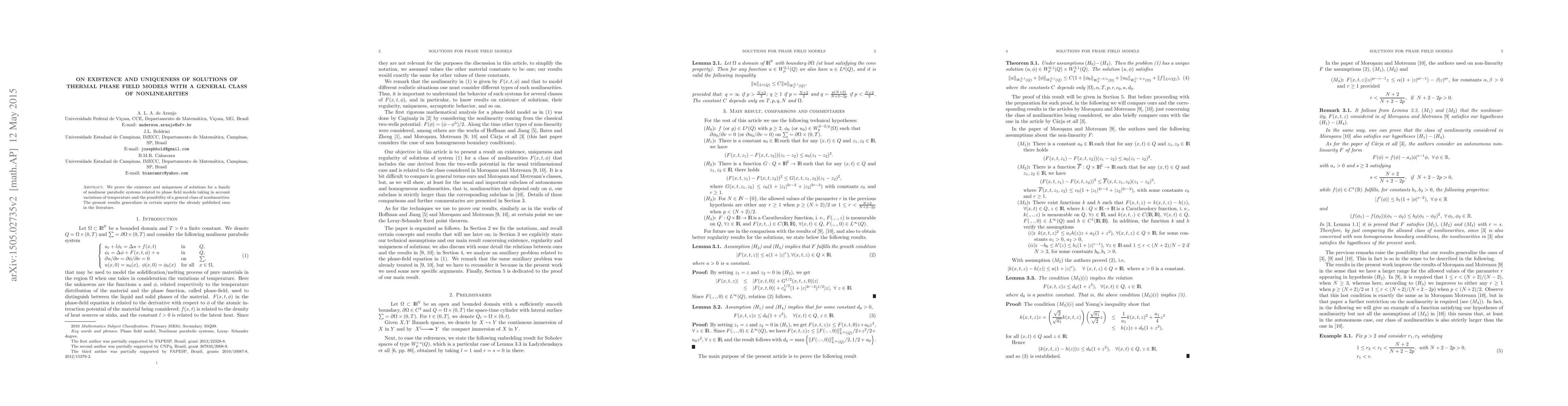 We prove the existence and uniqueness of solutions for a family of nonlinear parabolic systems related to phase field models taking in account variations of temperature and the possibility of a general class of nonlinearities. The present results generalizes in certain aspects the already published ones in the literature.