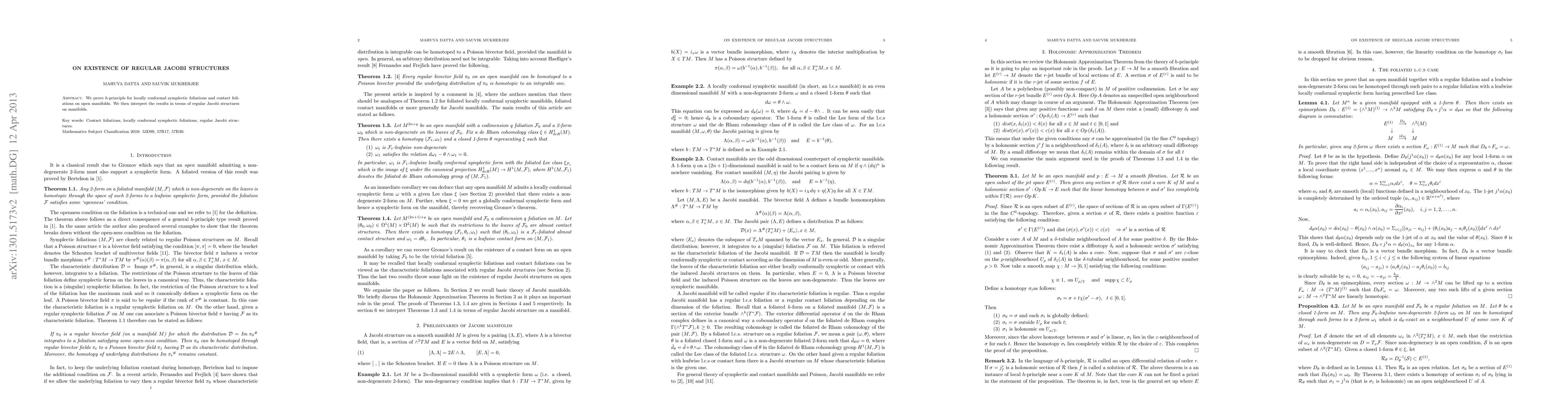 Summary: The paper proves the $h$-principle for locally conformal symplectic and contact foliations on open manifolds and relates the result to the existence of regular Jacobi structures. This establishes a connection between foliation theory and Jacobi structures.