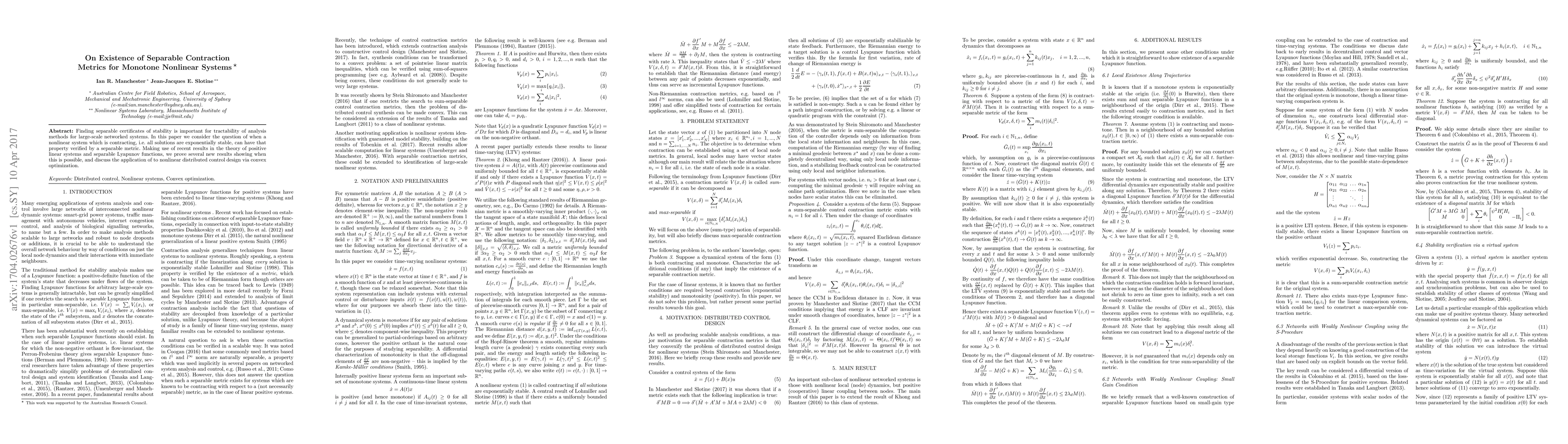 Finding separable certificates of stability is important for tractability of analysis methods for large-scale networked systems. In this paper we consider the question of when a nonlinear system which is contracting, i.e. all solutions are exponentially stable, can have that property verified by a separable metric. Making use of recent results in the theory of positive linear systems and separable Lyapunov functions, we prove several new results showing when this is possible, and discuss the application of to nonlinear distributed control design via convex optimization.