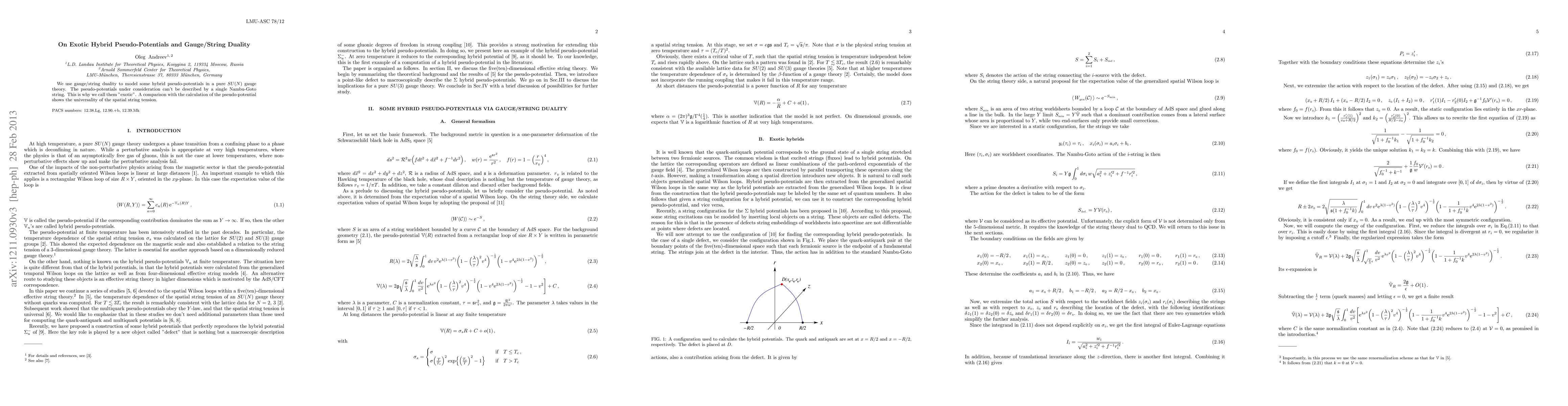 This paper explores the use of gauge/string duality to model exotic hybrid pseudo-potentials in pure SU(N) gauge theory, demonstrating that these cannot be described by a single Nambu-Goto string and confirming the universality of spatial string tension through comparison.
