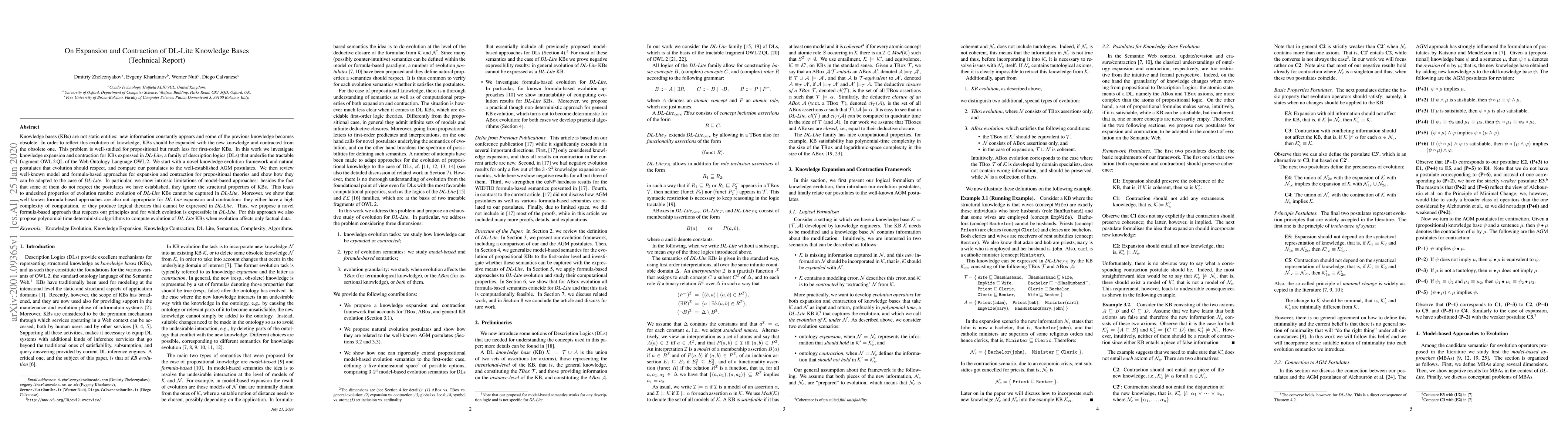 Researchers develop a novel framework for expanding and contracting knowledge bases in DL-Lite, addressing limitations of existing model-based and formula-based approaches, and proposing polynomial-time algorithms to compute evolution results.
