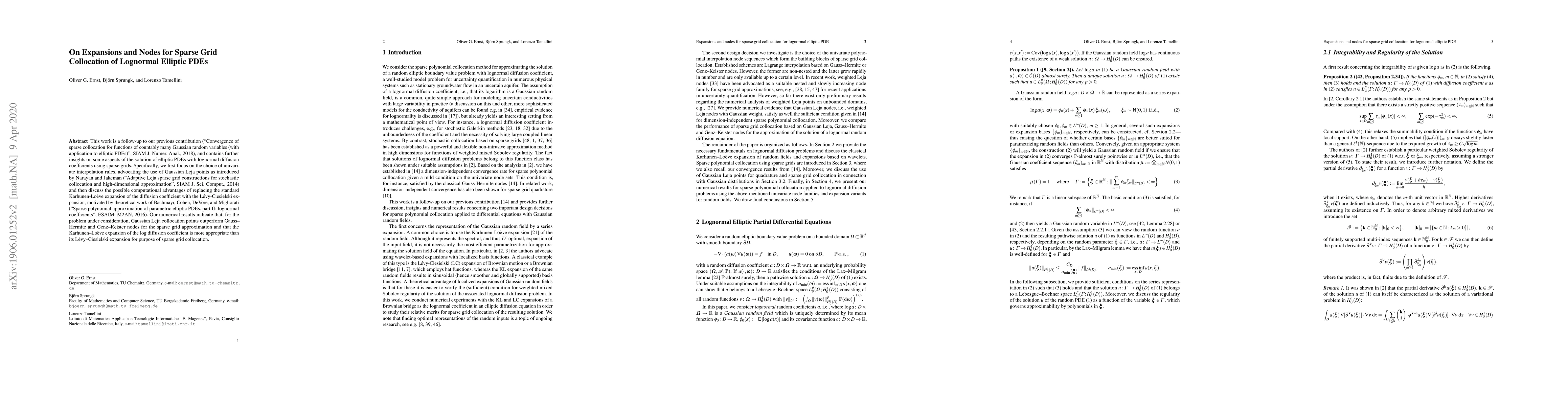 This paper explores the use of Gaussian Leja points for sparse grid collocation in solving elliptic PDEs with lognormal diffusion coefficients, finding them superior to Gauss-Hermite and Genz-Keister nodes. It also compares the Karhunen-Loève and Lévy-Ciesielski expansions, concluding that the former is more suitable for sparse grid collocation.