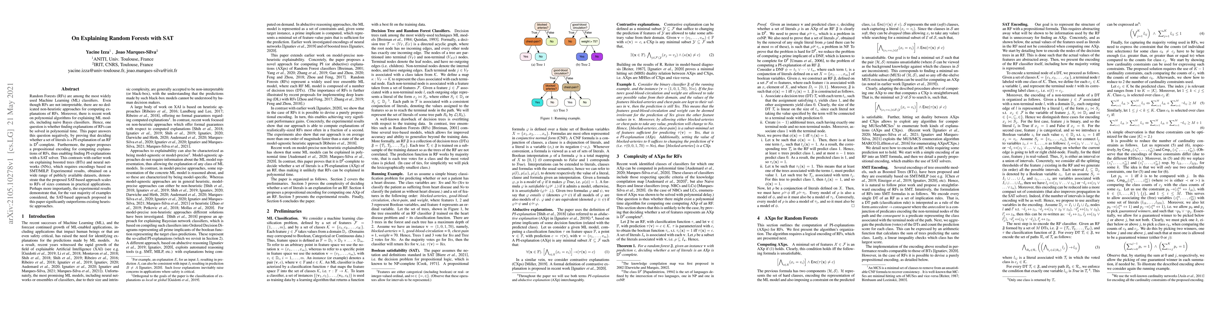 Researchers prove that explaining Random Forests is D^P-complete, but develop a SAT-based approach that outperforms existing methods, demonstrating its scalability and effectiveness for a wide range of datasets.