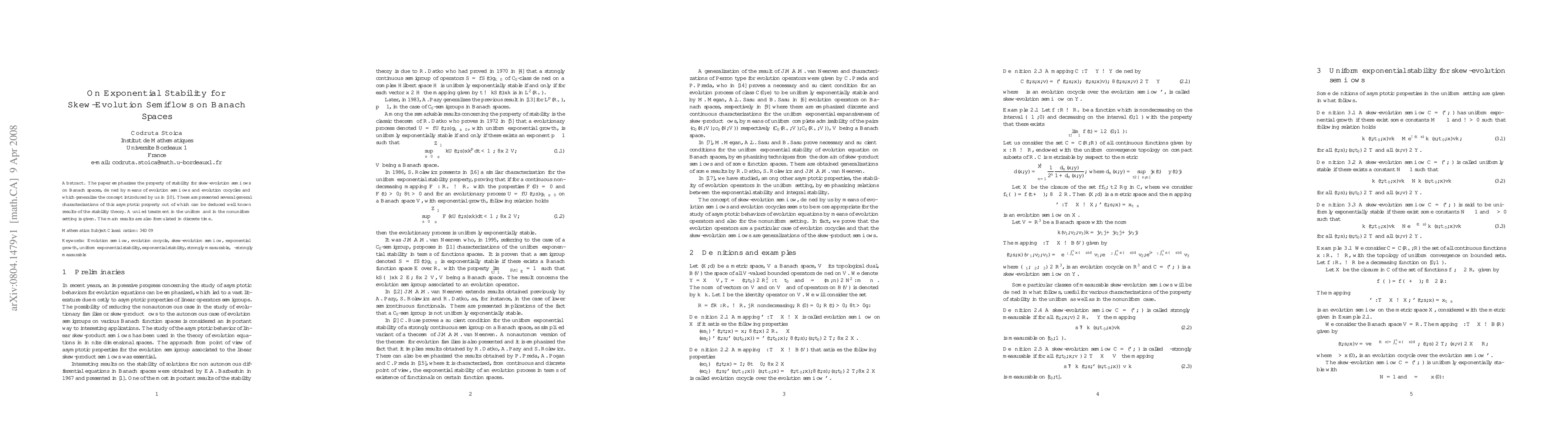 This paper investigates the exponential stability of skew-evolution semiflows on Banach spaces, providing general characterizations of this asymptotic property and unifying results in both uniform and nonuniform settings, with extensions to discrete time formulations.