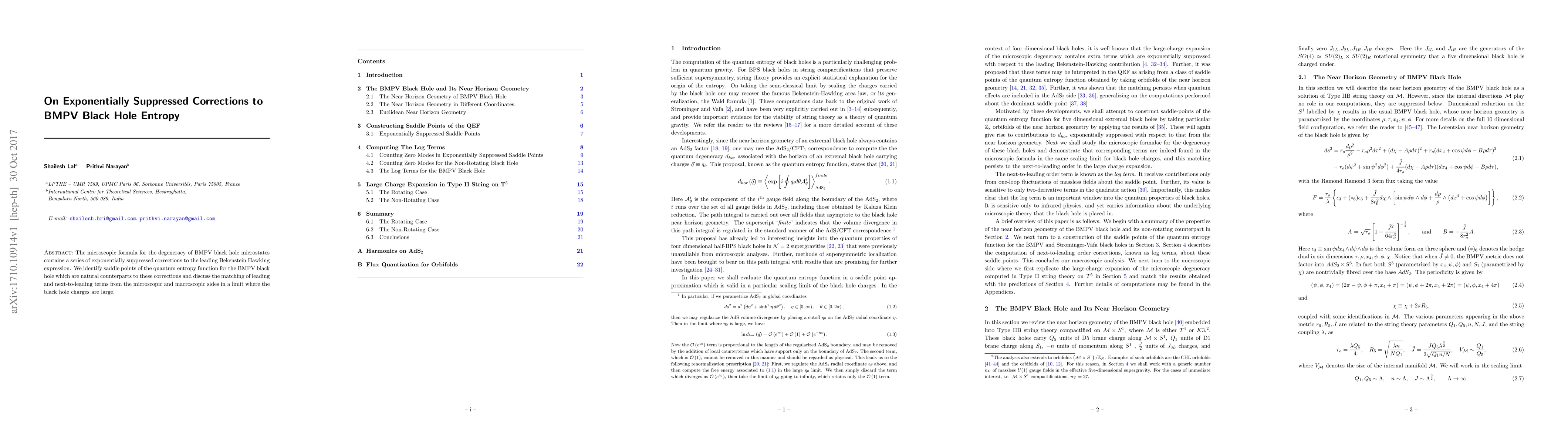 This paper investigates the exponentially suppressed corrections to the entropy formula of BMPV black holes, identifying quantum entropy function saddle points that correspond to these corrections and discussing their alignment with leading and next-to-leading terms in a regime with large black hole charges.