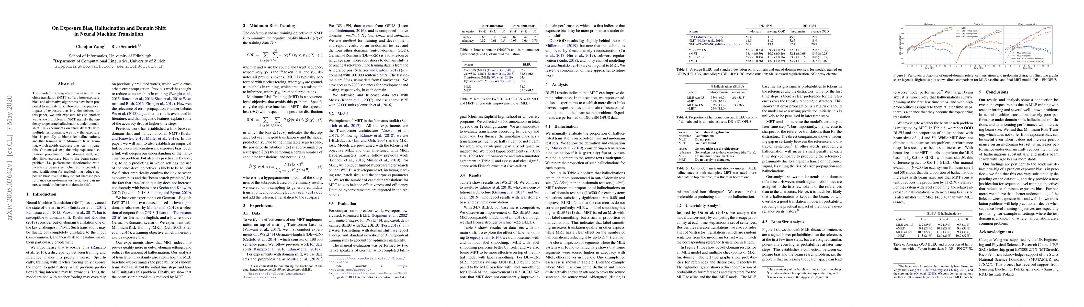The standard training algorithm in neural machine translation (NMT) suffers from exposure bias, and alternative algorithms have been proposed to mitigate this. However, the practical impact of exposure bias is under debate. In this paper, we link exposure bias to another well-known problem in NMT, namely the tendency to generate hallucinations under domain shift. In experiments on three datasets with multiple test domains, we show that exposure bias is partially to blame for hallucinations, and that training with Minimum Risk Training, which avoids exposure bias, can mitigate this. Our analysis explains why exposure bias is more problematic under domain shift, and also links exposure bias to the beam search problem, i.e. performance deterioration with increasing beam size. Our results provide a new justification for methods that reduce exposure bias: even if they do not increase performance on in-domain test sets, they can increase model robustness to domain shift.