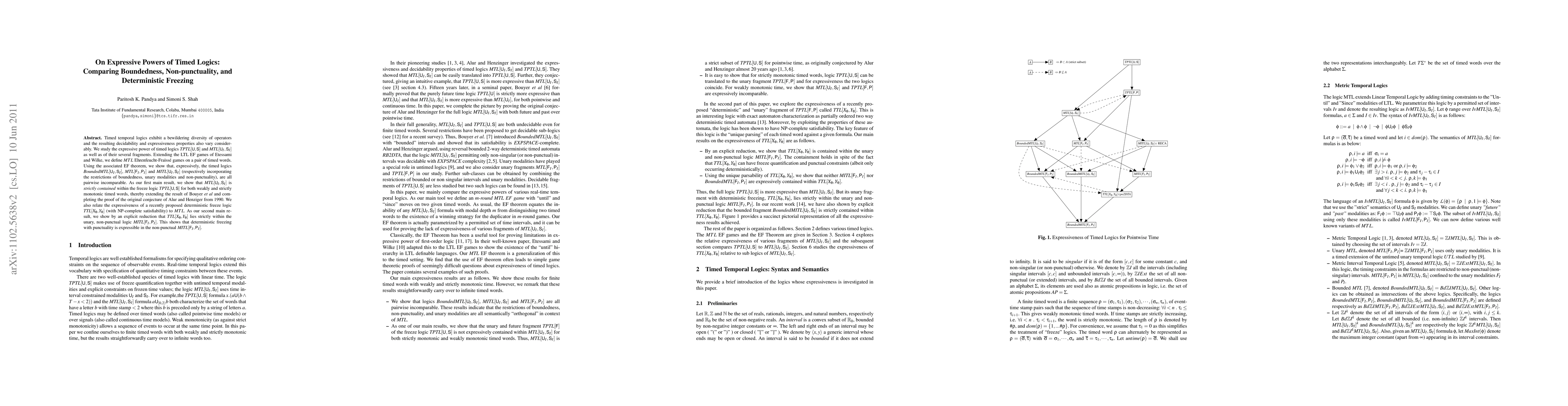 This paper compares the expressive powers of various timed logics, including TPTL[U,S], MTL[U,S], and their fragments. It demonstrates that MTL[U,S] is strictly contained within the freeze logic TPTL[U,S], and shows that a deterministic freeze logic TTL[X,Y] is strictly within the non-punctual logic MITL[F,P].