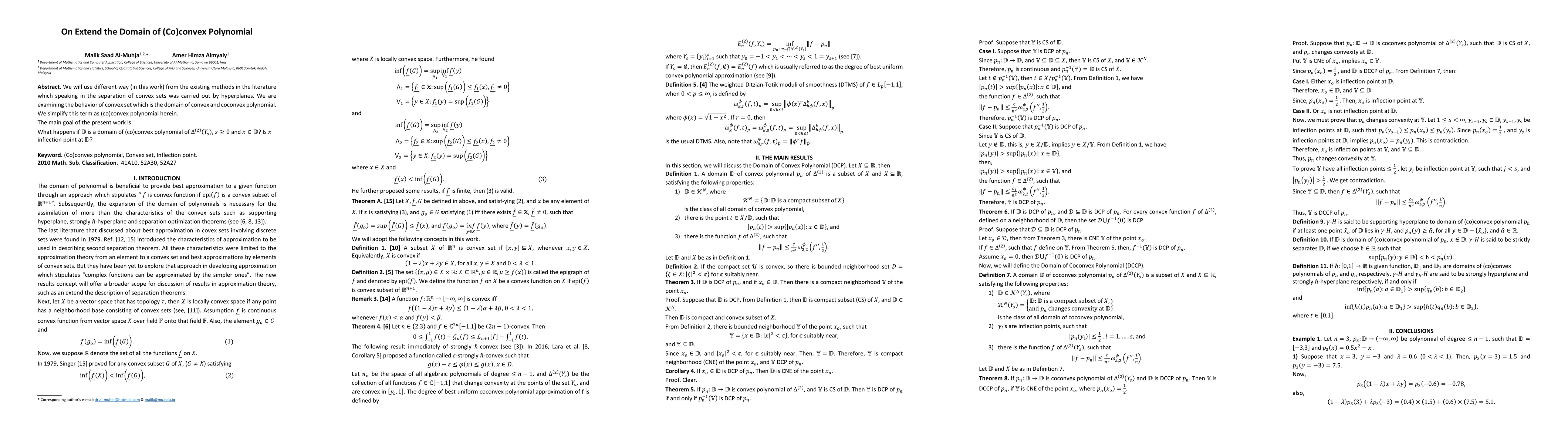 We will use different way (in this work) from the existing methods in the literature which speaking in the separation of convex sets was carried out by hyperplanes. We are examining the behavior of convex set which is the domain of convex and coconvex polynomial. We simplify this term as (co)convex polynomial herein.