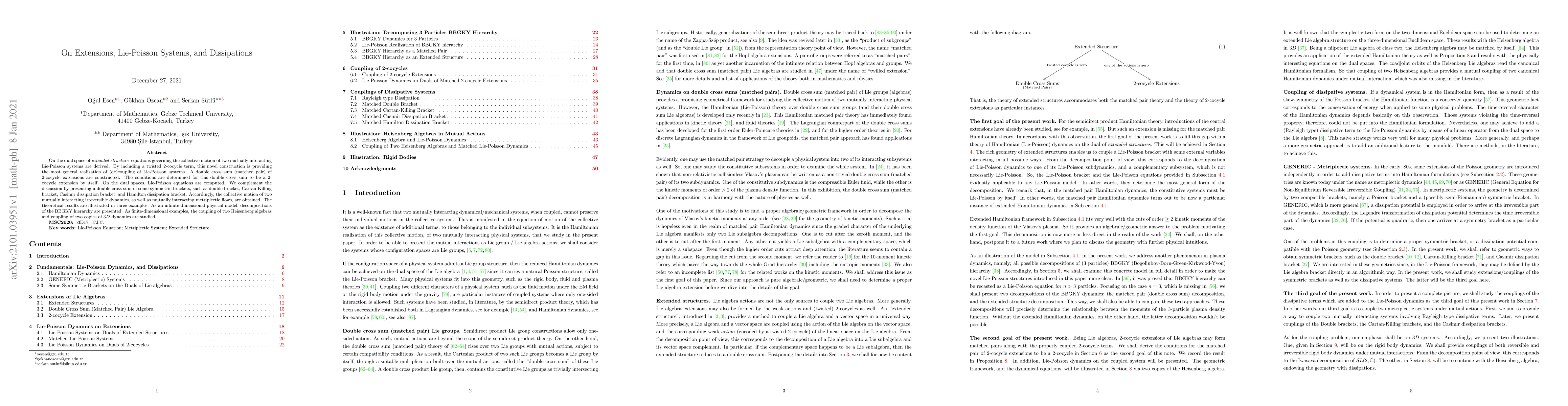 This paper derives equations governing the collective motion of two interacting Lie-Poisson systems using a novel construction involving twisted 2-cocycle extensions and double cross sums. It determines conditions for these extensions to form a 2-cocycle and discusses their application to various irreversible dynamics and metriplectic flows, illustrated through examples including BBGKY hierarchy decompositions and coupling of Heisenberg algebras.