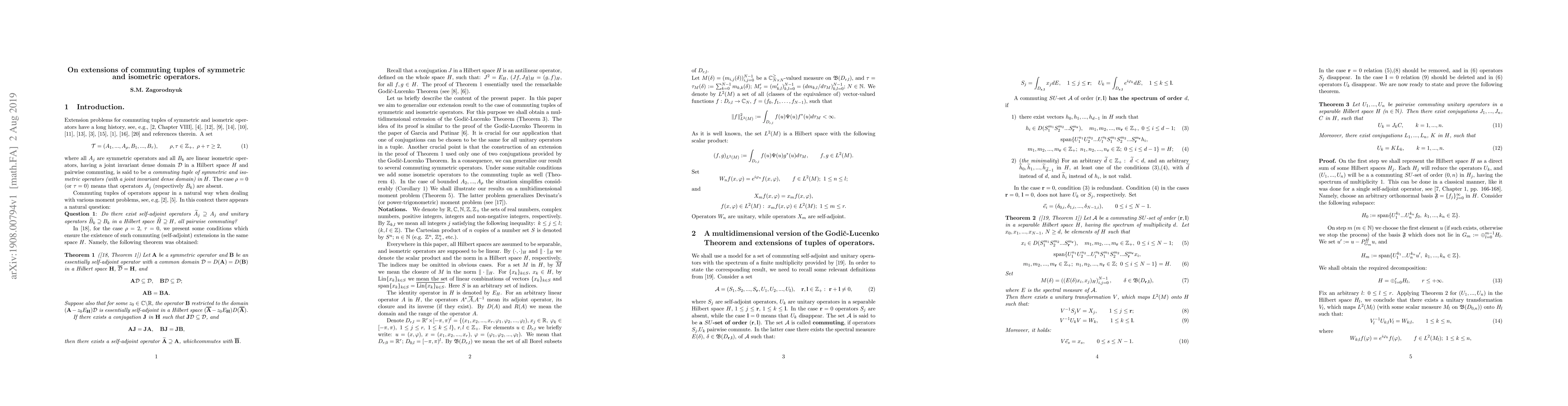 In this paper we study extensions of commuting tuples of symmetric and isometric operators to commuting tuples of self-adjoint and unitary operators. Some conditions which ensure the existence of such extensions are presented. A multidimensional analog of the Godi\v{c}-Lucenko Theorem is proved. An application to a multidimensional power-trigonometric moment problem is given.