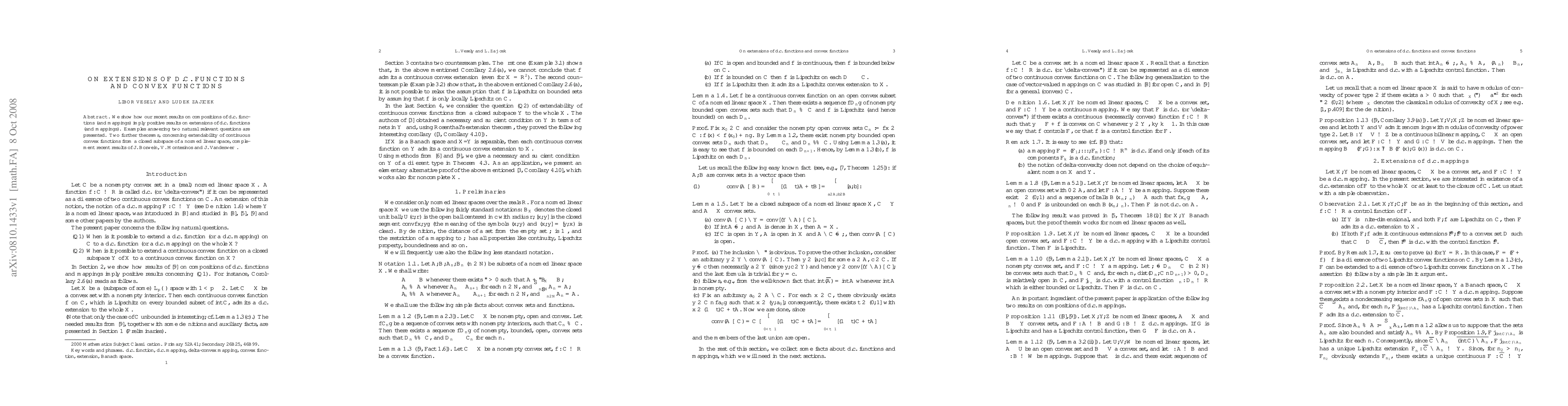 This paper demonstrates that recent findings on compositions of d.c. functions lead to successful extensions of these functions, and includes examples addressing pertinent questions. Additionally, it presents theorems on the extendability of continuous convex functions from closed subspaces of normed linear spaces, enhancing the work of J. Borwein, V. Montesinos, and J. Vanderwerff.