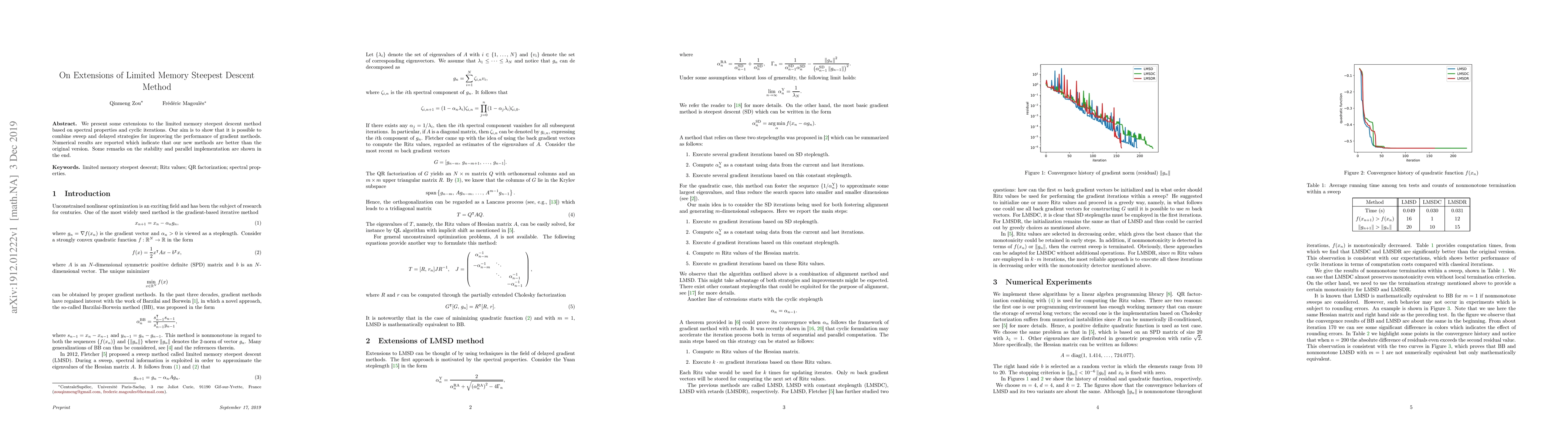 This paper extends the limited memory steepest descent method by incorporating spectral properties and cyclic iterations, aiming to enhance gradient method performance through a combination of sweep and delayed strategies. Numerical results demonstrate the superiority of the new methods over the original version, with additional considerations for stability and parallel implementation.