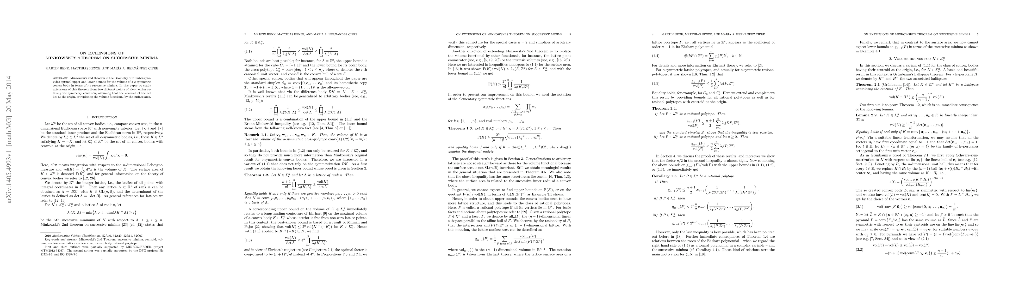 This paper explores extensions of Minkowski's 2nd theorem by either relaxing the symmetry condition while centering the set at the origin or by substituting the volume with the surface area, providing new bounds for $o$-symmetric convex bodies.