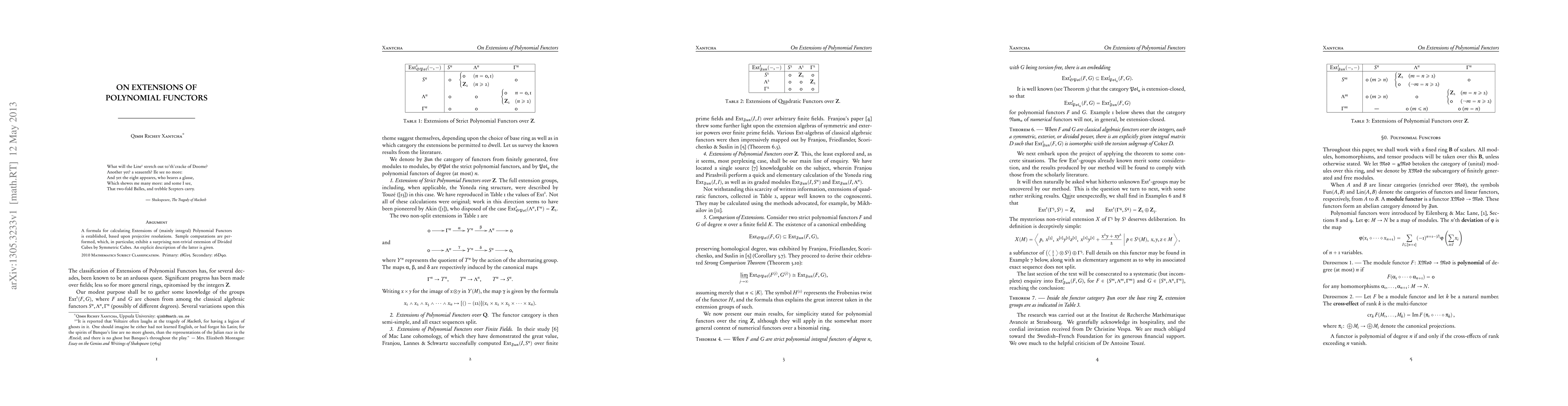 Researchers develop a formula to calculate extensions of polynomial functors using projective resolutions, revealing surprising non-trivial relationships between seemingly simple algebraic structures.