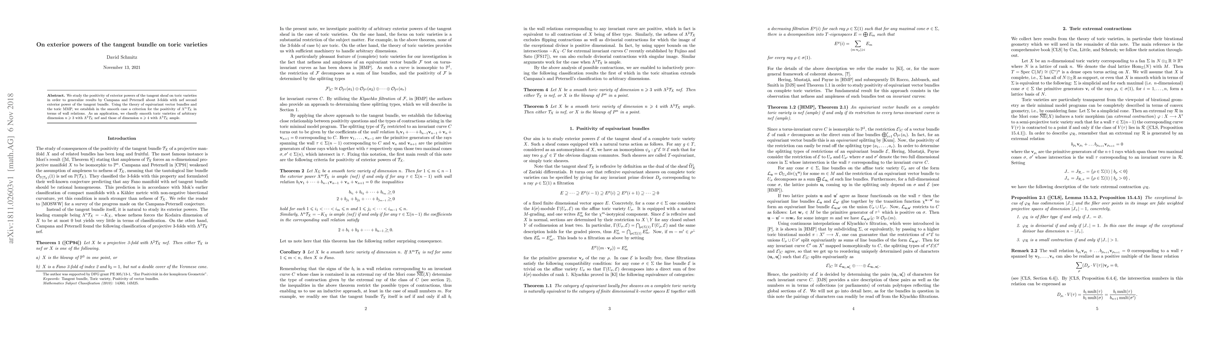 Researchers study the positivity of exterior powers of tangent bundles on toric varieties, generalizing results about 3-folds with certain properties, using equivariant vector bundles and the toric MMP to establish a criterion for positivity in terms of wall relations.