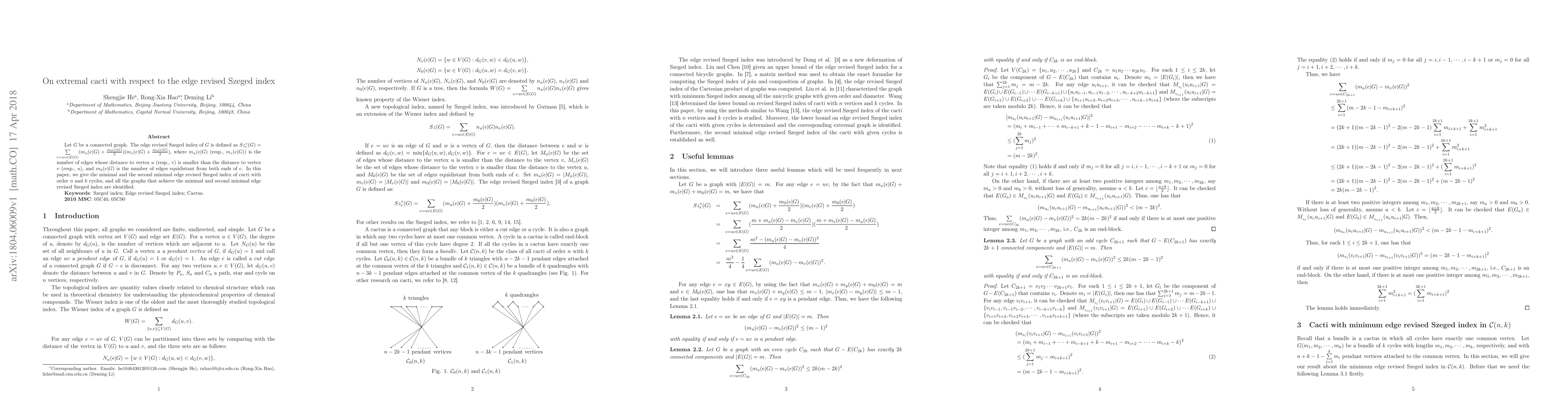 This paper identifies the extremal cacti with the minimal and second minimal edge revised Szeged index, providing a detailed analysis of the graph's structure and the corresponding index values. The identified graphs achieve the lowest possible edge revised Szeged index for their respective order and cycle counts.