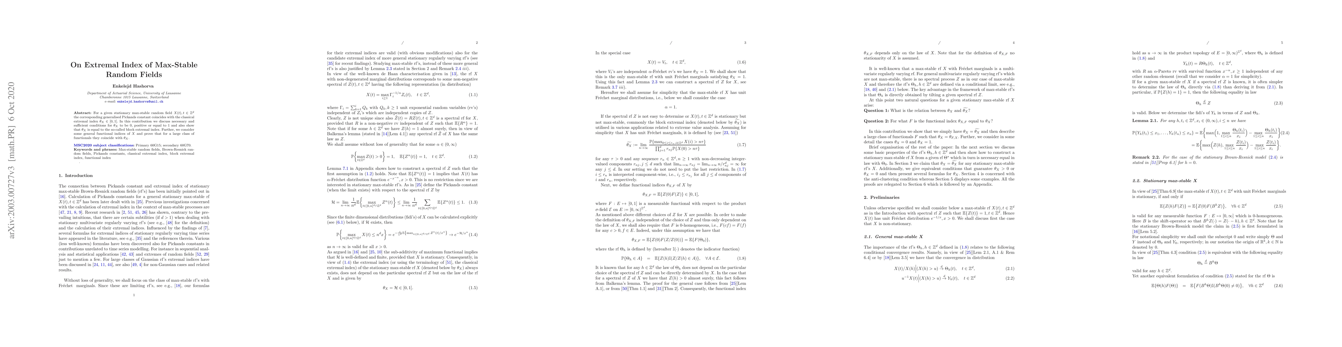 The paper analyzes max-stable random fields, discussing conditions for the extremal index θ to be 0, positive, or equal to 1. It also establishes connections between θ and various functionals, extending to multivariate regularly varying random fields.