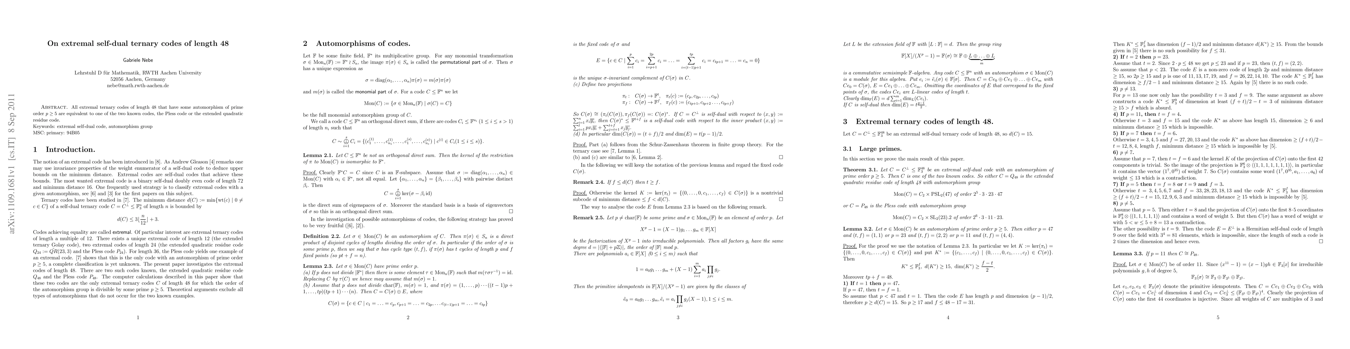 All extremal ternary codes of length 48 that have some automorphism of prime order $p\geq 5$ are equivalent to one of the two known codes, the Pless code or the extended quadratic residue code.